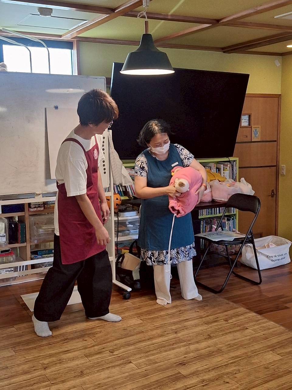 10月11日(土)のイベントは、久しぶりの「みんなの保健室」でした。いつもお世話になっている根間さんが優しく教えてくださいました。妊婦体験や赤ちゃんの抱っこ体験に、子どもたちは興味津々です。