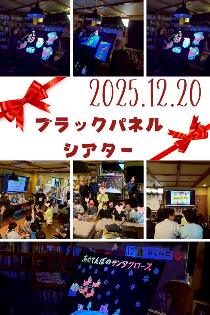 にじの森文庫ブラックパネルシアターイベント!!元保育士の先生や元小学校の先生たちが行ってくれました♪楽器を使って皆でXmasソングを歌ったりと楽しみました(^^)/